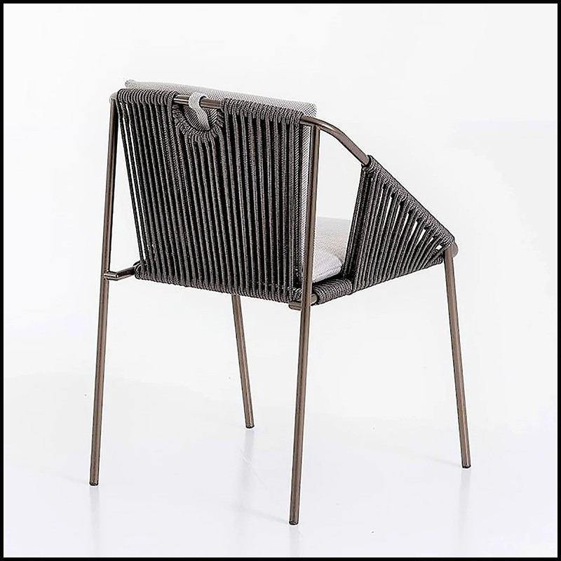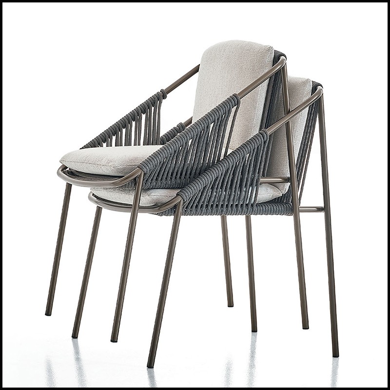 Le dossier et les accoudoirs sont en corde grise tressée.