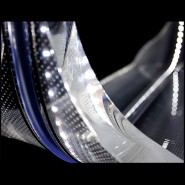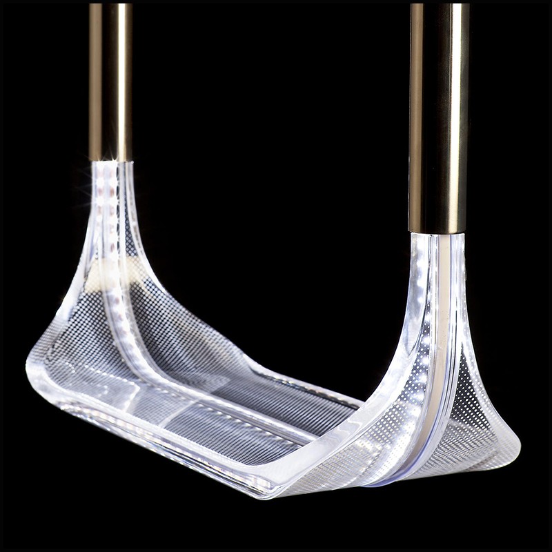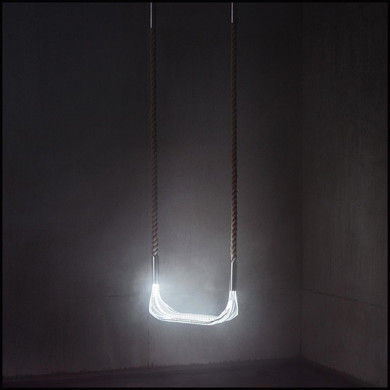 La balançoire est éclairée de l'intérieur par une bande de LED de haute puissance.