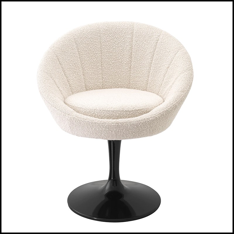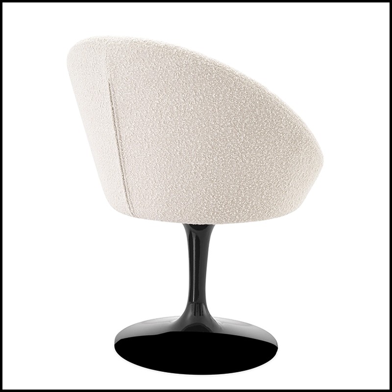 Son revêtement en tissu bouclé crème et sa base en forme de cloche