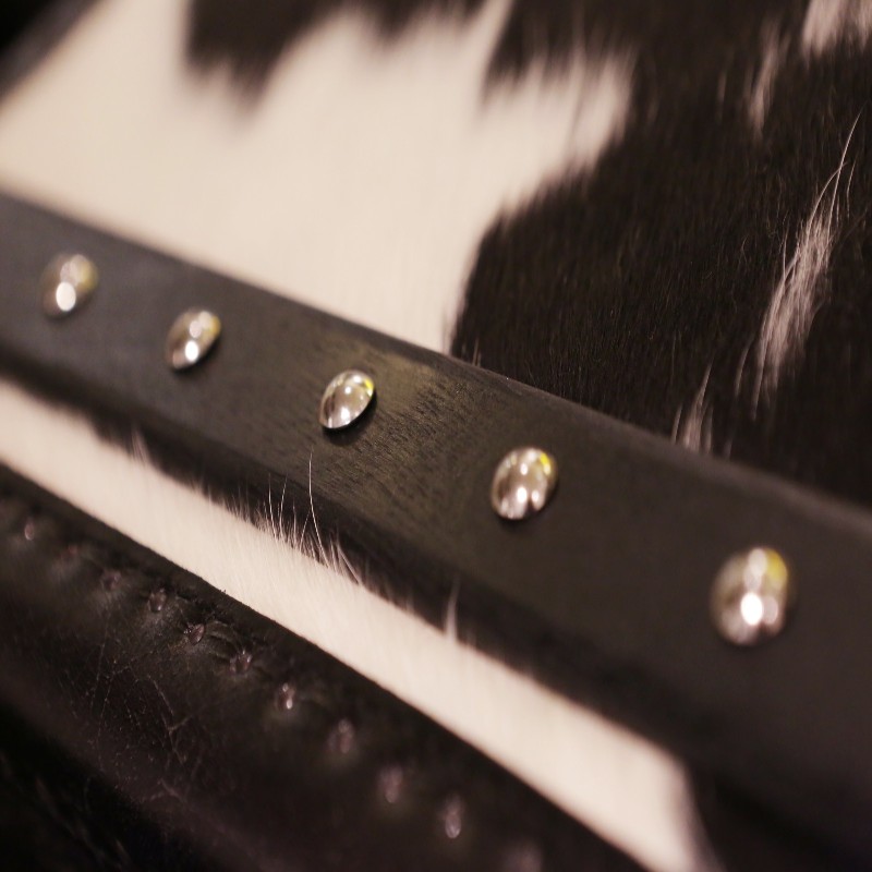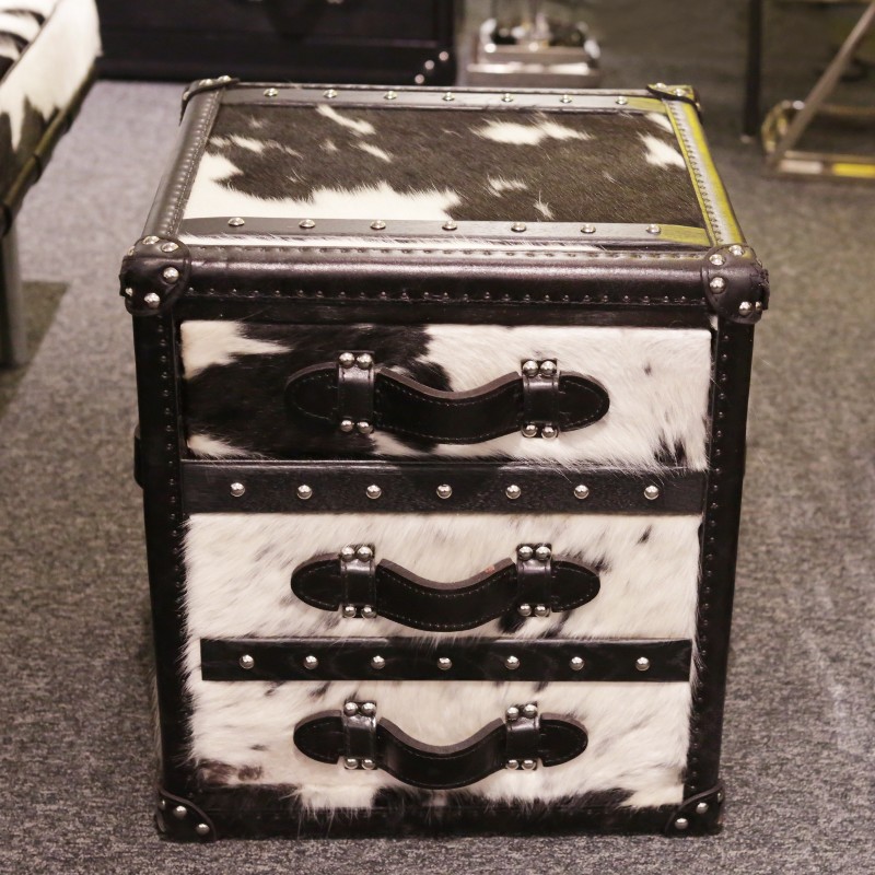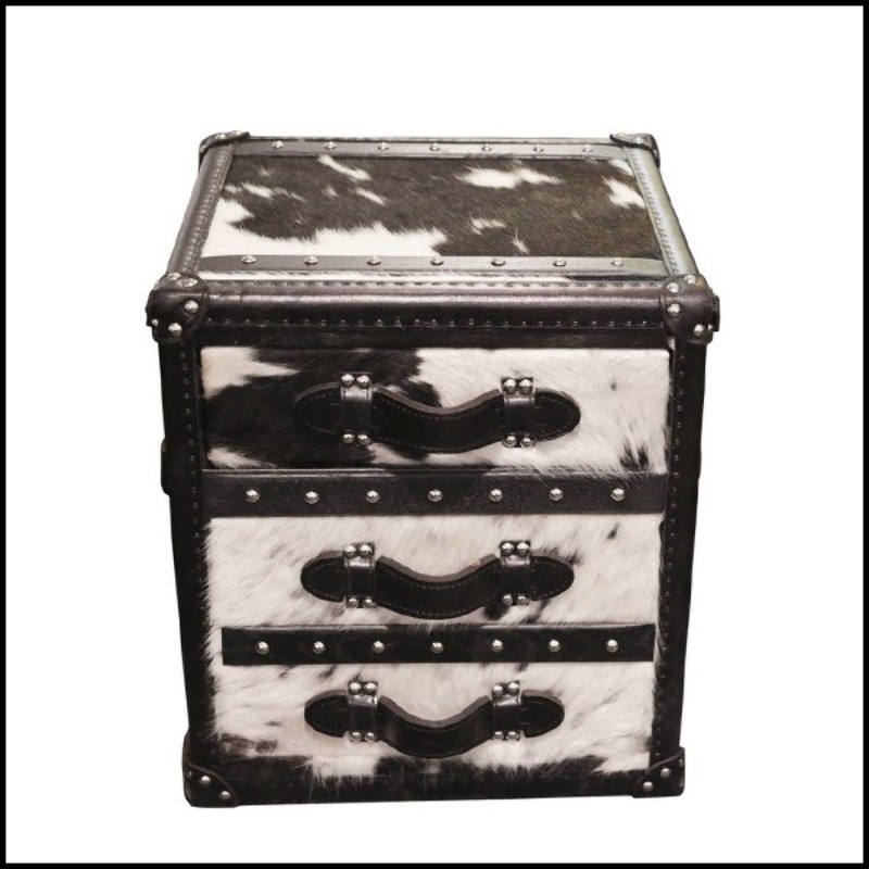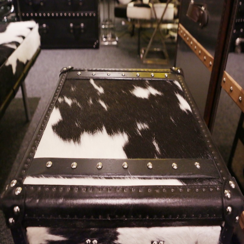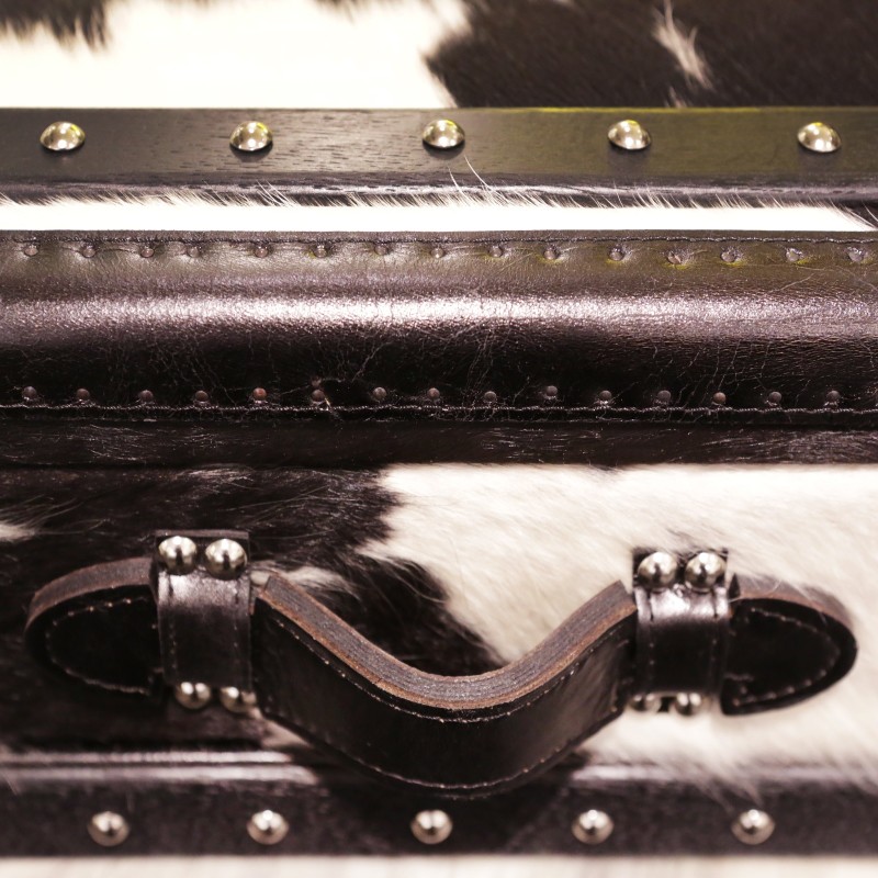 Coffre avec structure en bois massif recouvert de cuir de vachette noir et blanc 35-Cowhide Cube
