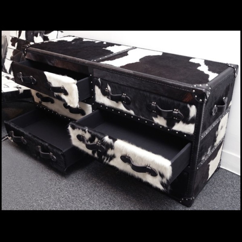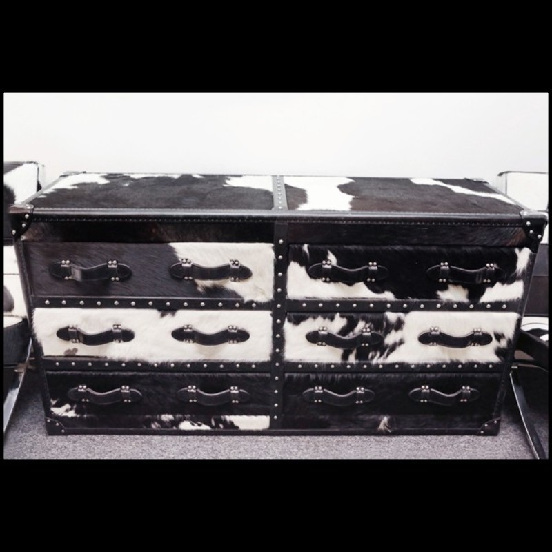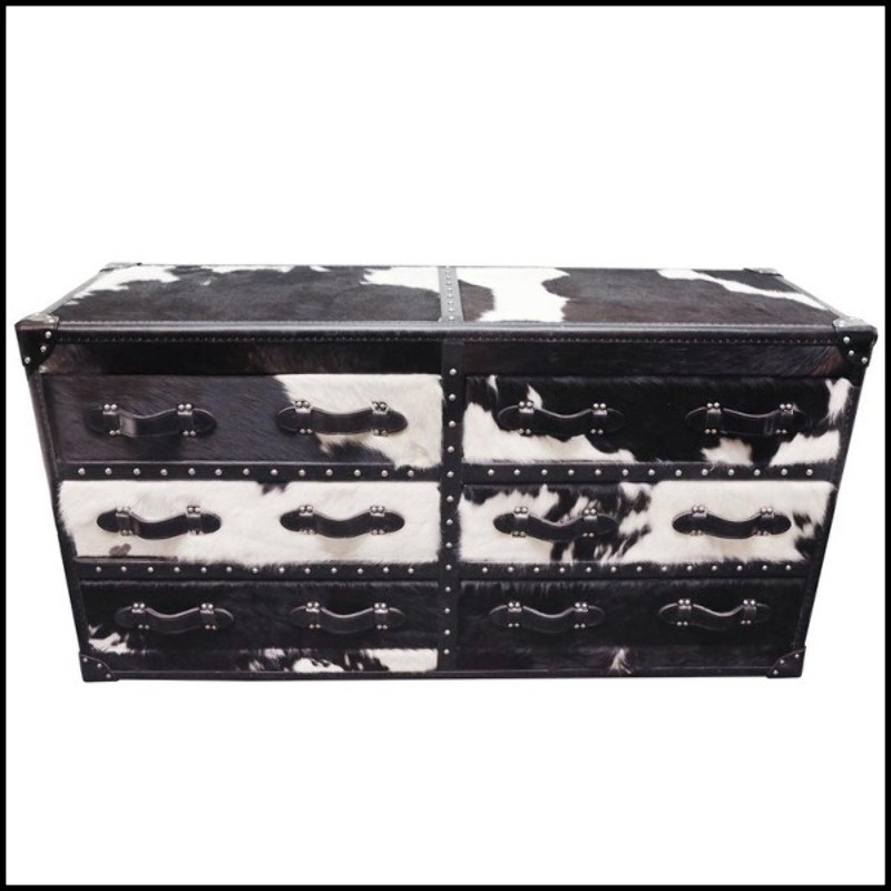 Coffre avec structure en bois massif recouvert de cuir de vachette noir et blanc 35-Cowhide Long