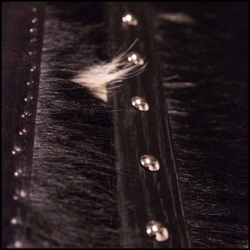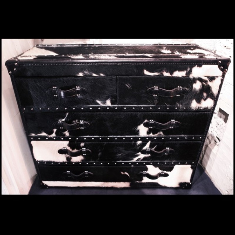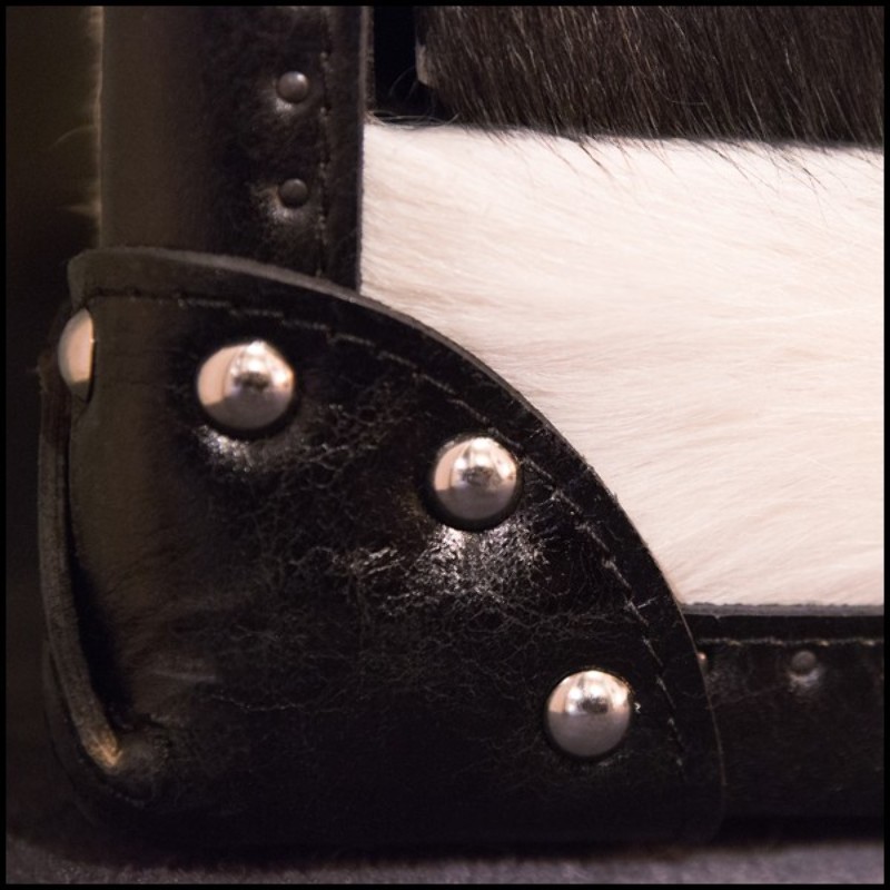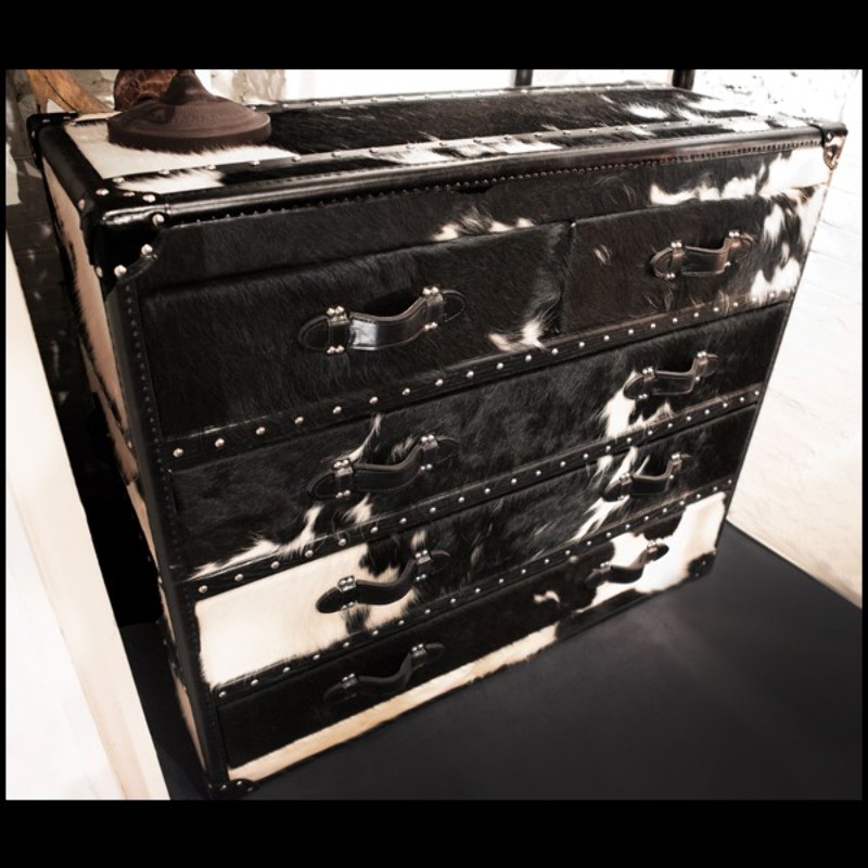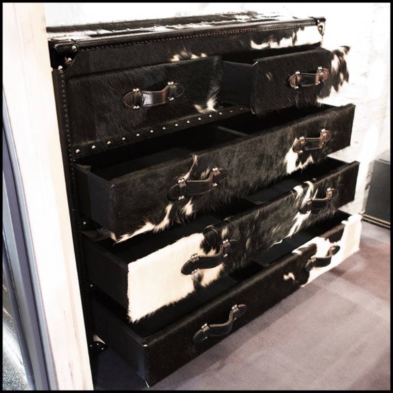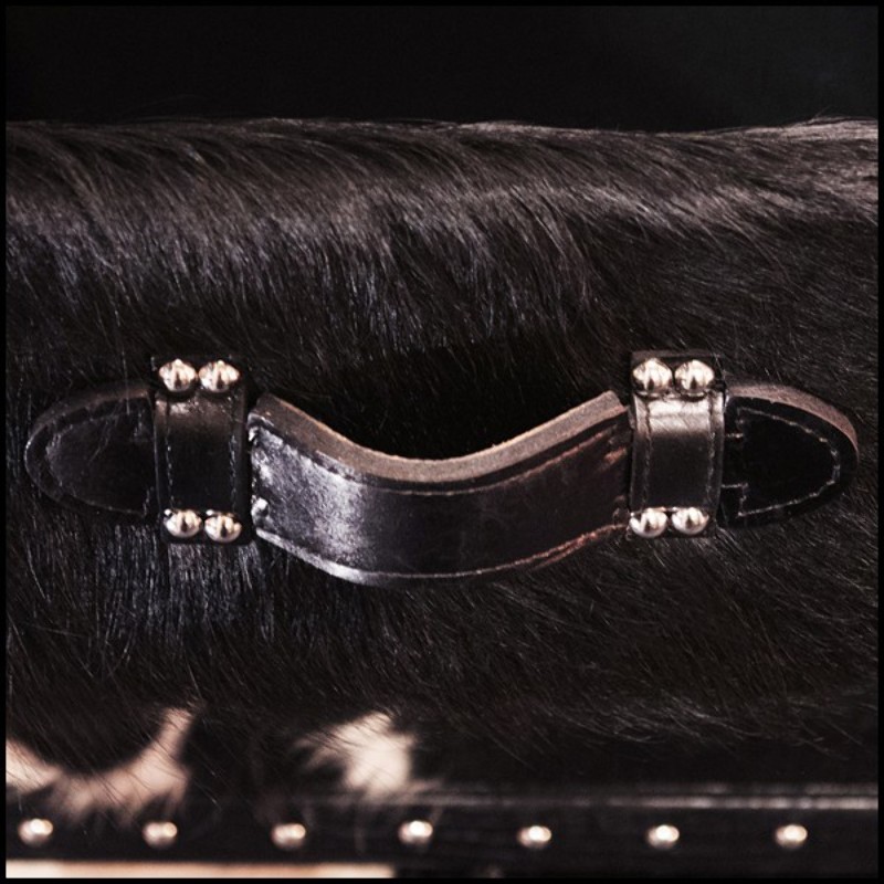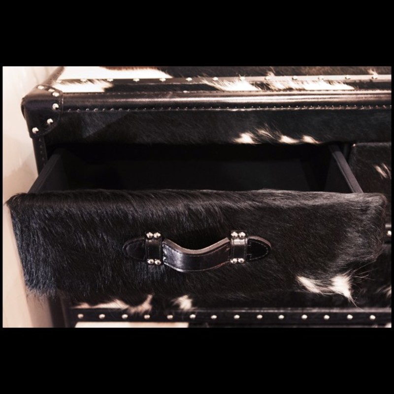 Coffre avec structure en bois massif recouvert de cuir de vachette noir et blanc 35-Cowhide High