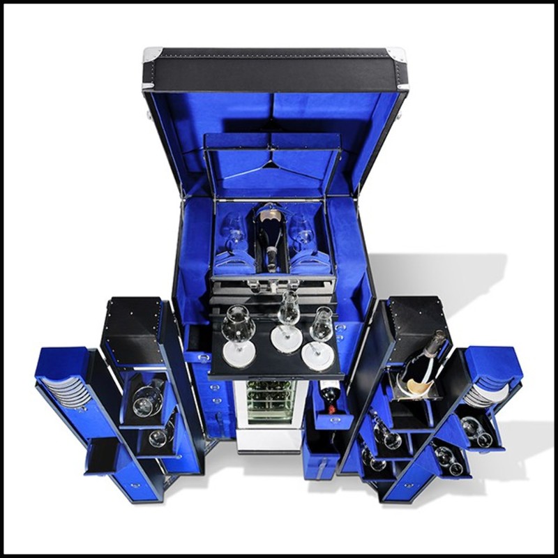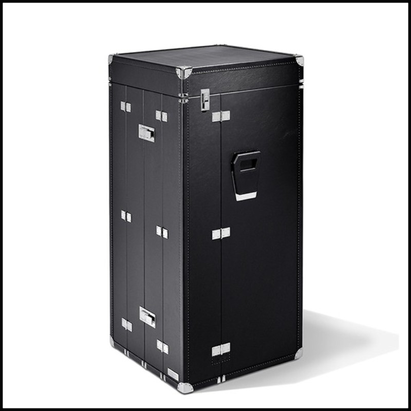 Malle à Champagne et Vin recouverte de cuir de vachette grainé noir.