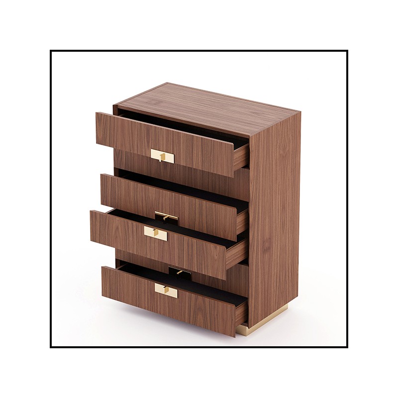 La commode Lenny High associe l’élégance du bois de noyer plaqué à un