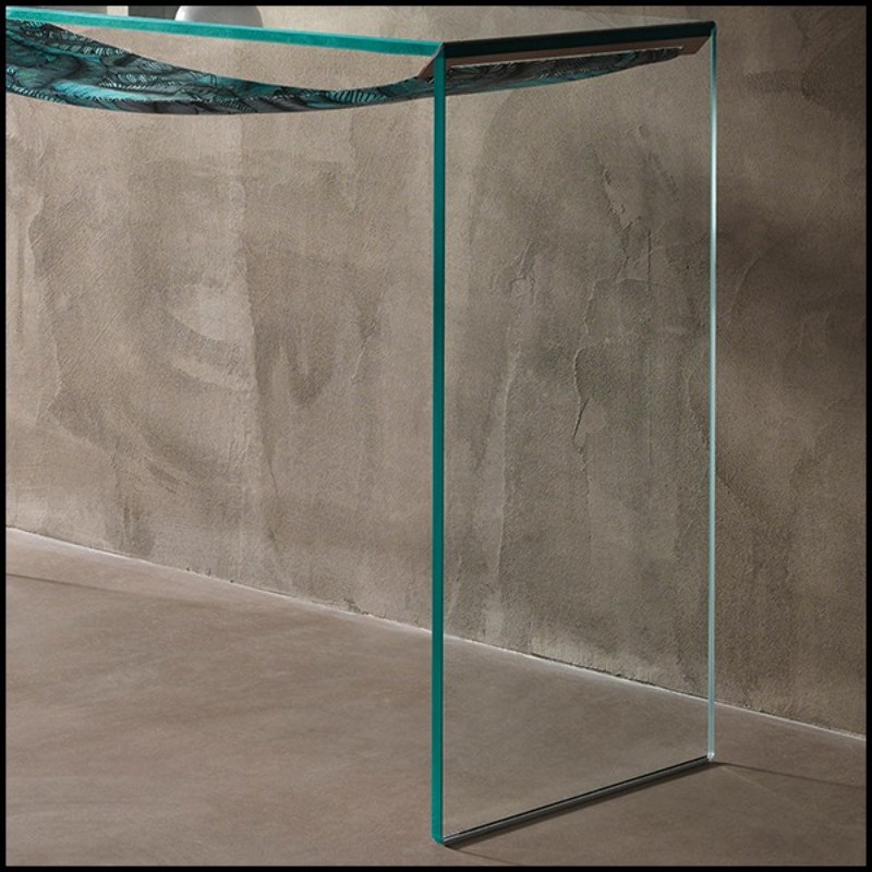 Avec motif de feuilles vertes imprimé sur tissu au dessous du plateau.