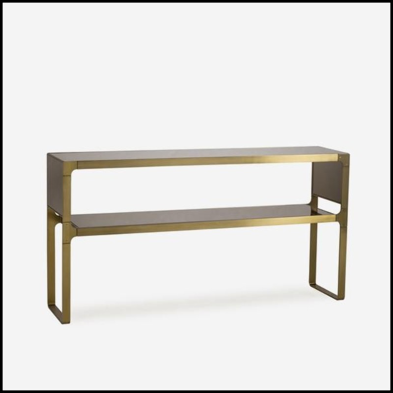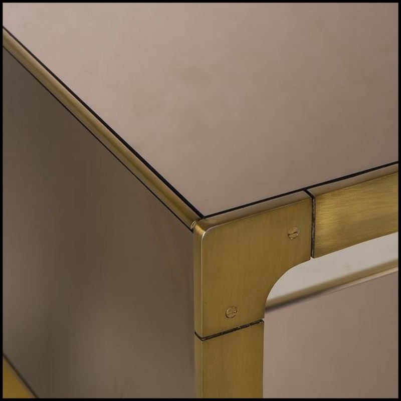 Console avec une structure en acier inoxydable finition laiton vintage.