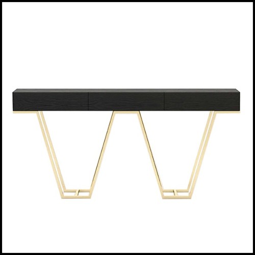 Console Harpe avec plateau en bois finition frêne noir mat.