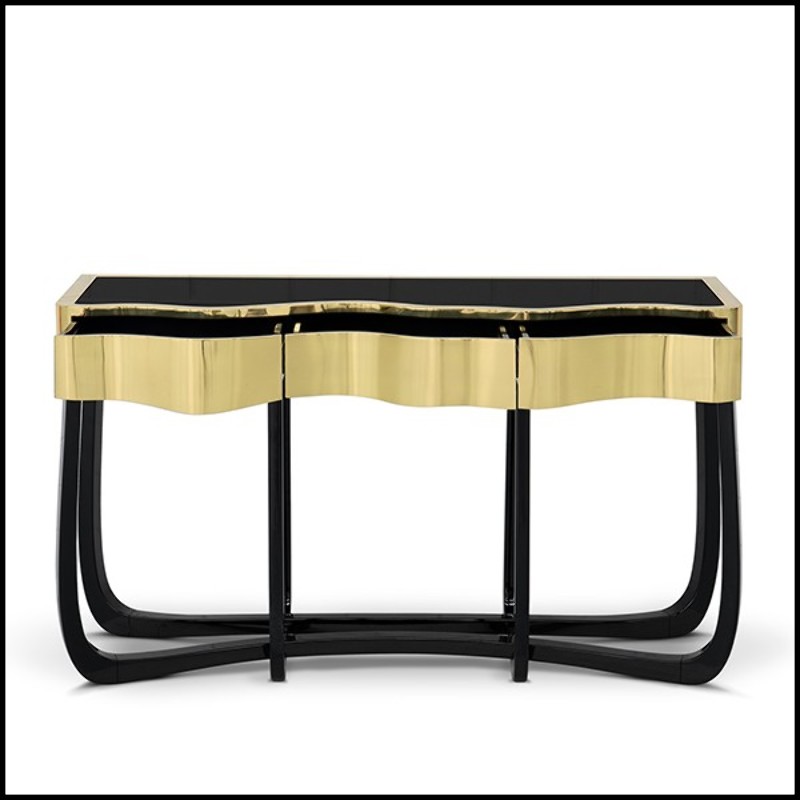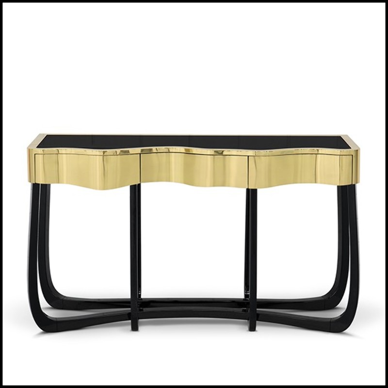 Console Curvy Gold dotée d'une structure supérieure en laiton poli finition dorée,