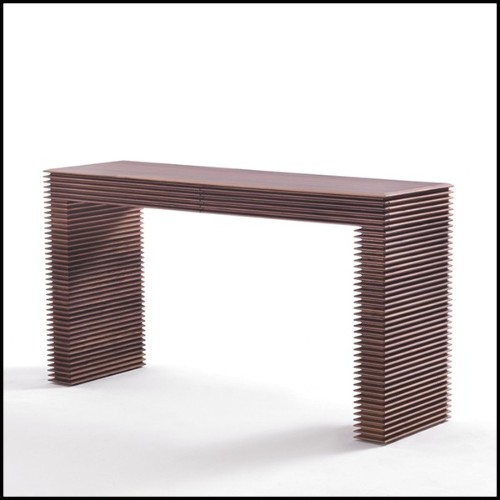 Console Onde dotée d'une structure en noyer massif finition teinté foncé,
