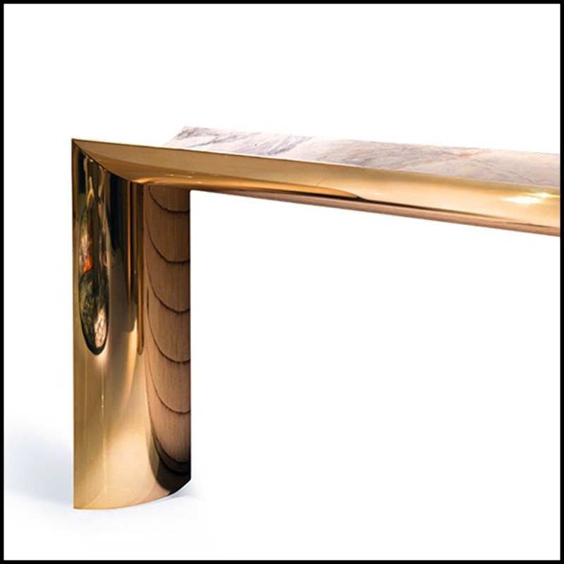 en finition or avec côtés concaves façonnés en marbre massif gris clair poli.