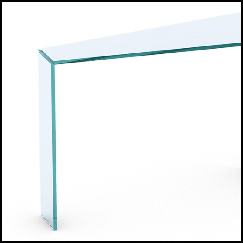 La Console Axis est toute en verre clair avec une forme asymétrique.