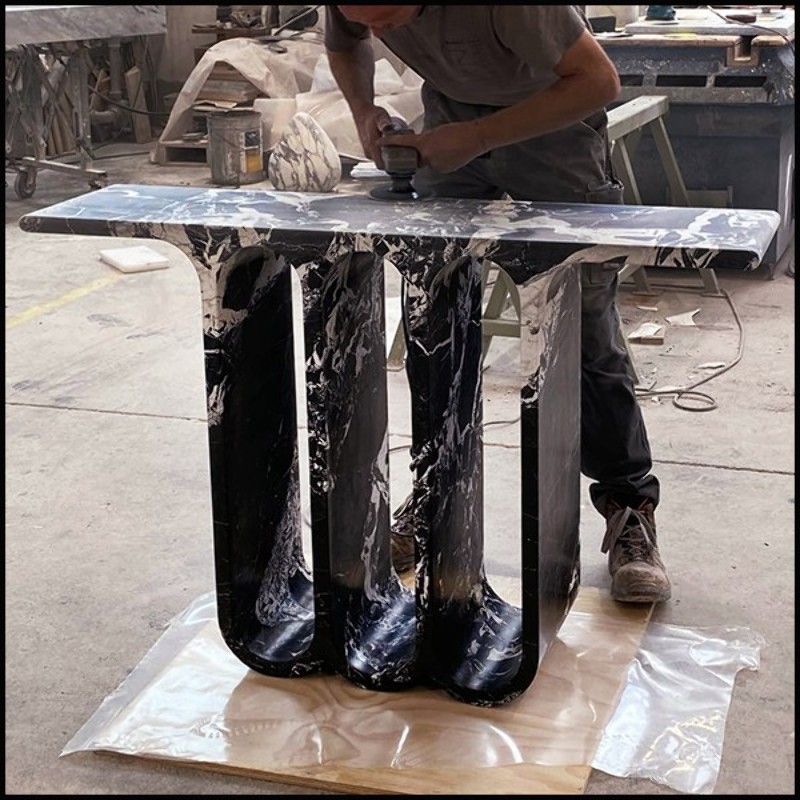 Console Till Marble tout en marbre antique italien sculpté et poli.