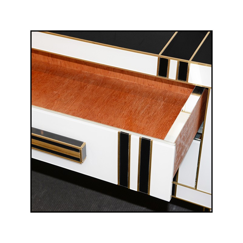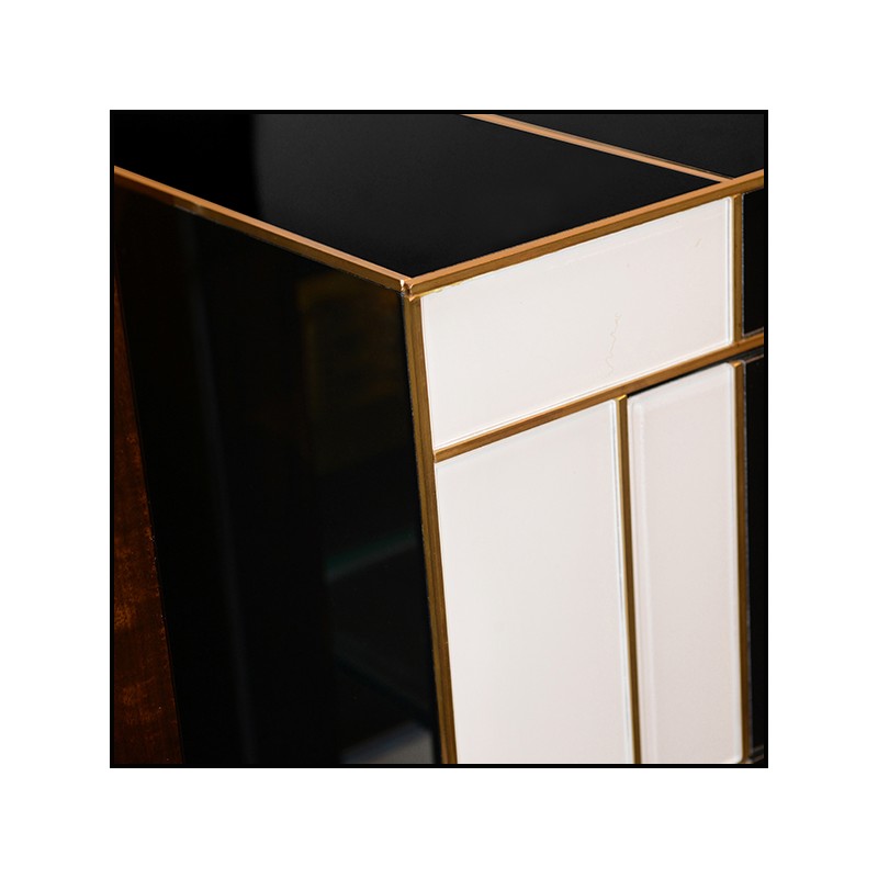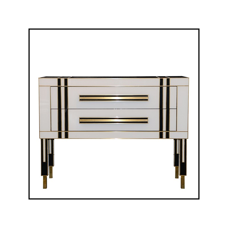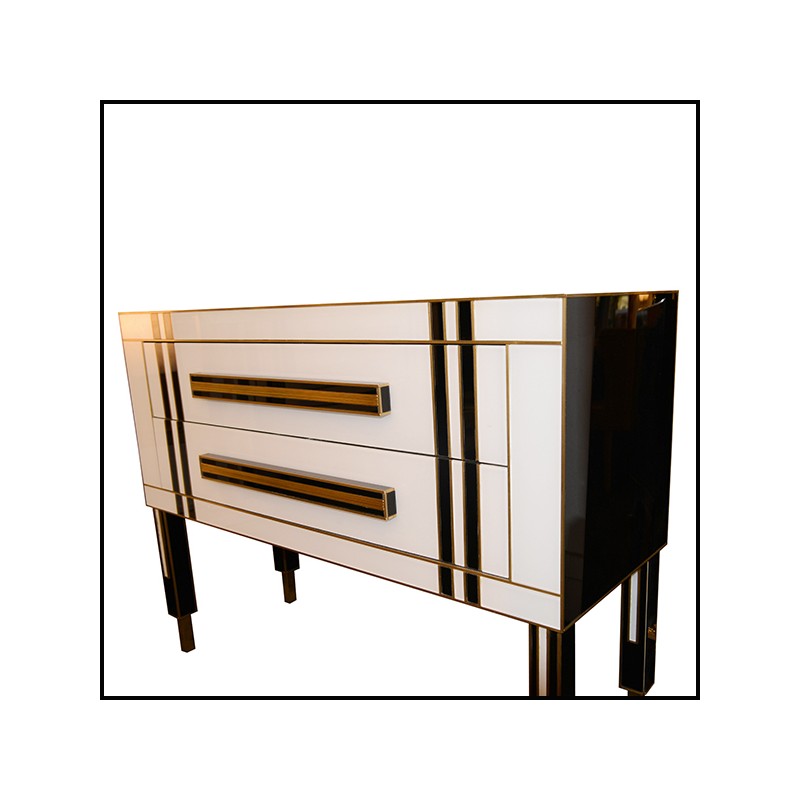 toute la commode est recouverte de verre de Murano blanc et de verre de Murano noir.