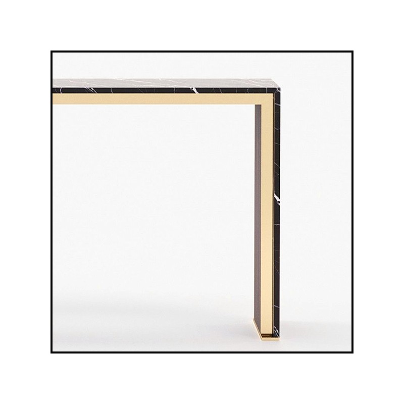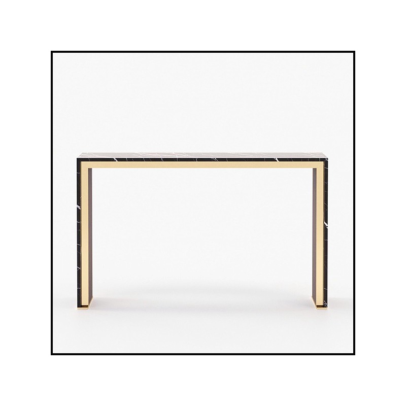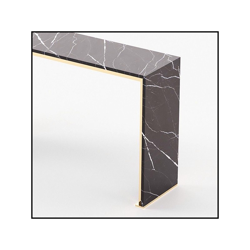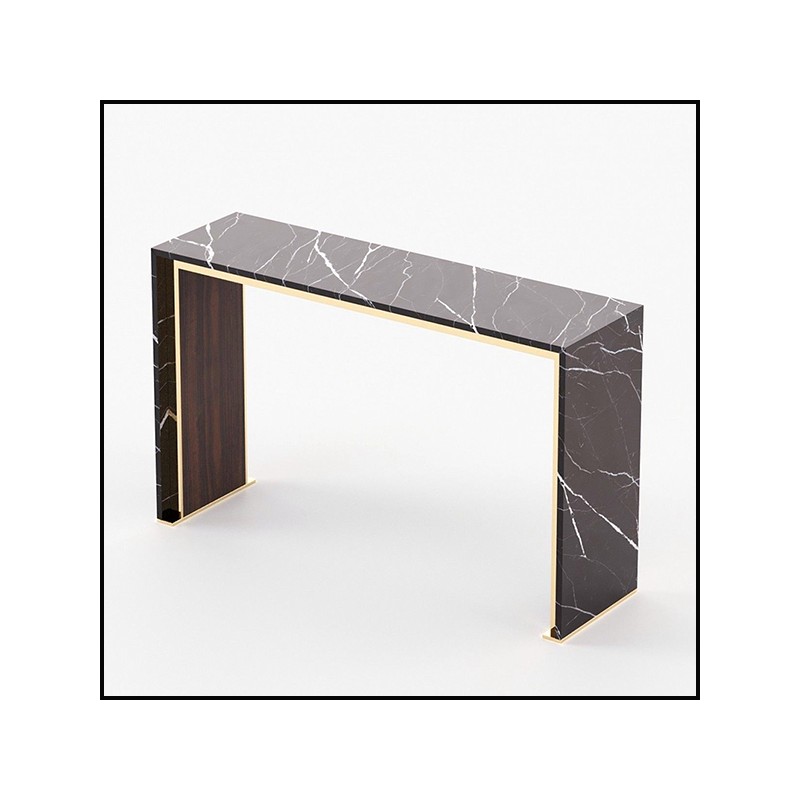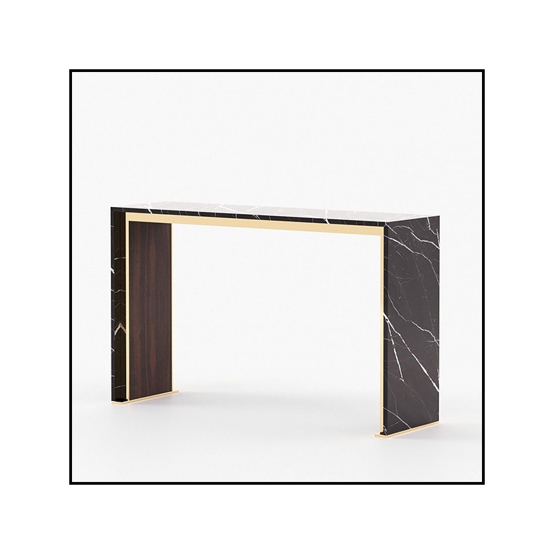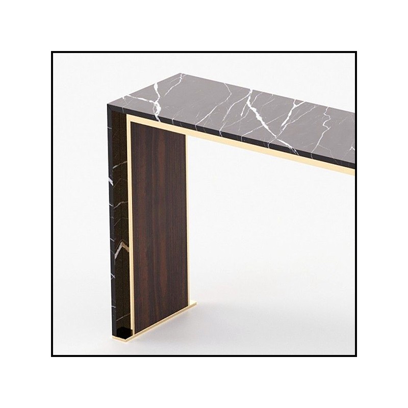 Console Agustia est dotée d'une structure en placage d'eucalyptus smocké, finition mate et en marbre noir Marquina poli.