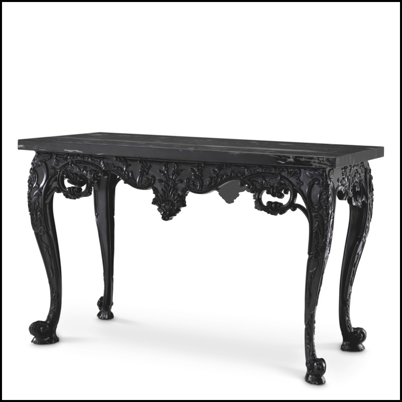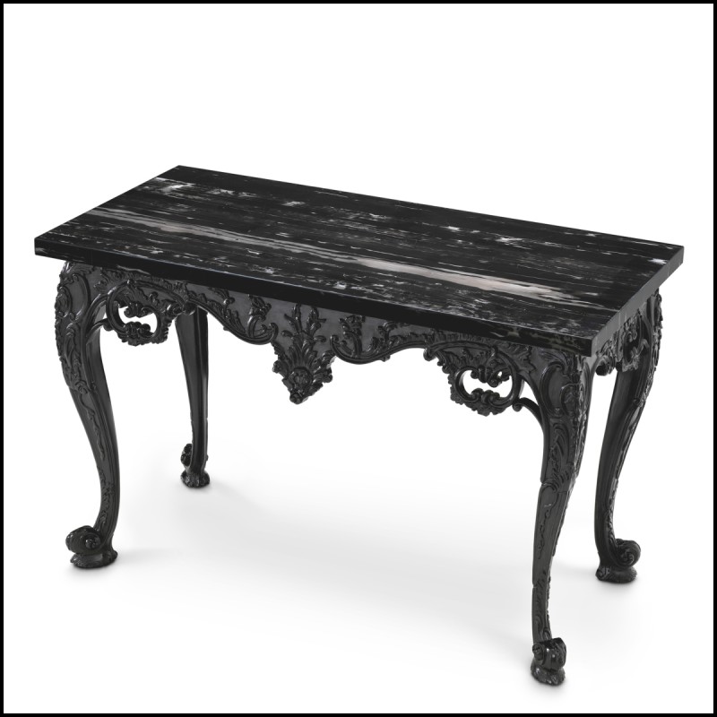 Conçue avec un plateau en marbre noir spectaculaire et une base