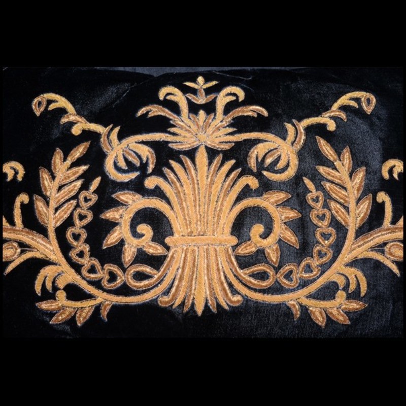 Coussin Ryad en velours noir avec fils d'or brodé à la main.