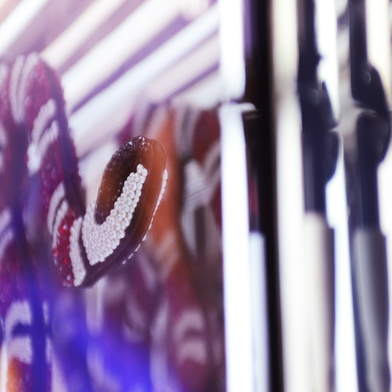 incruster dans un verre miroir et plexiglas créant un effet miroir infini.