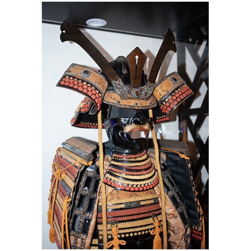 Dotée d'un casque et de protections corporelles fabriqués à la main.