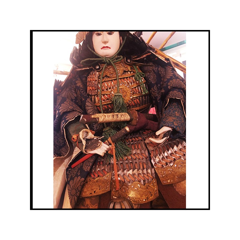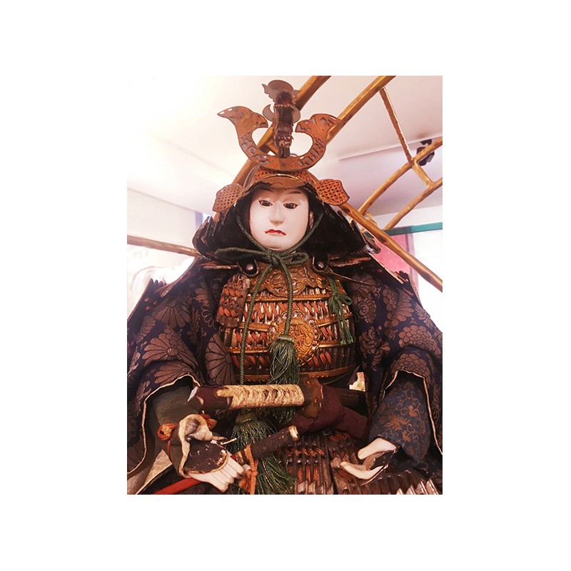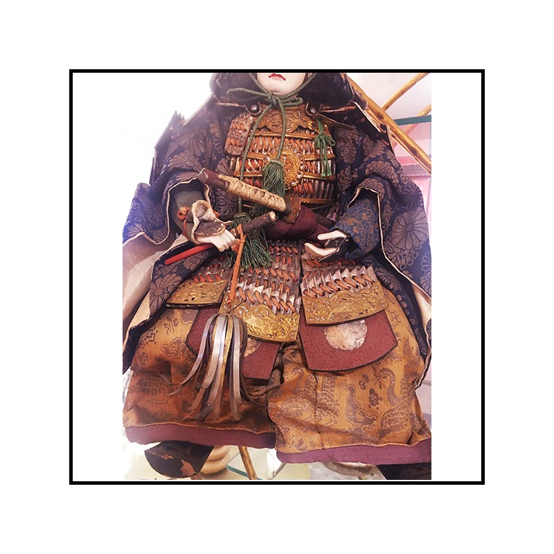 Sculpture Samuraï Puppet Musha Nyngyo A Set of 2 présente une structure en bois, bois sculpté à la main,