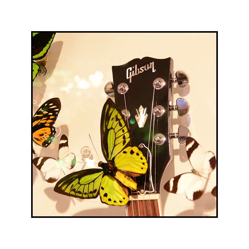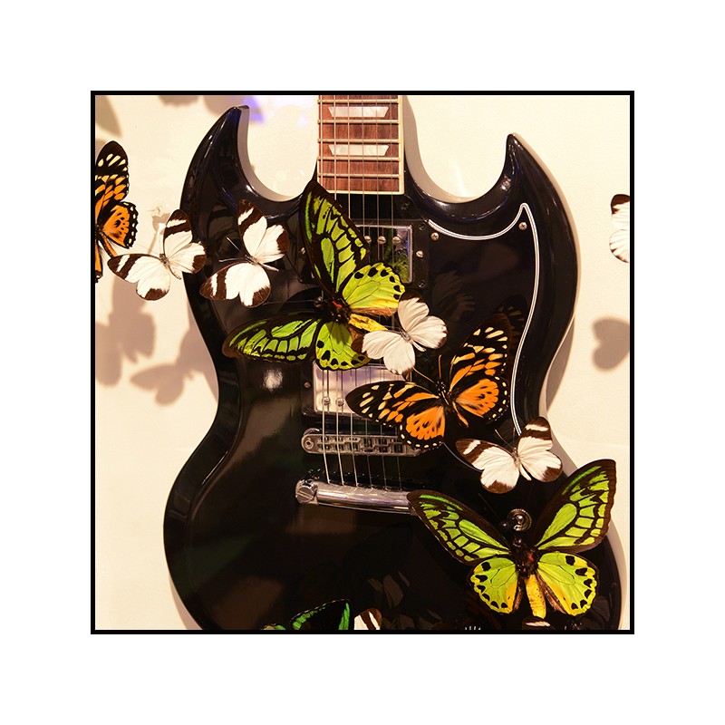 Guitare Papillon AC DC présente une véritable guitare Gibson SG noire,