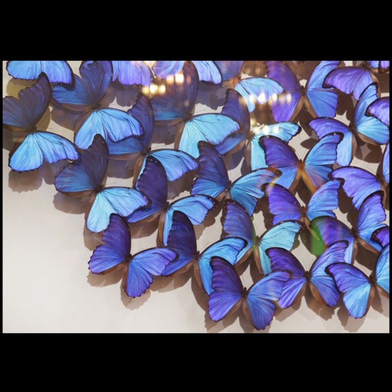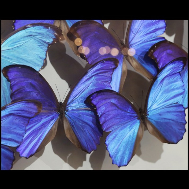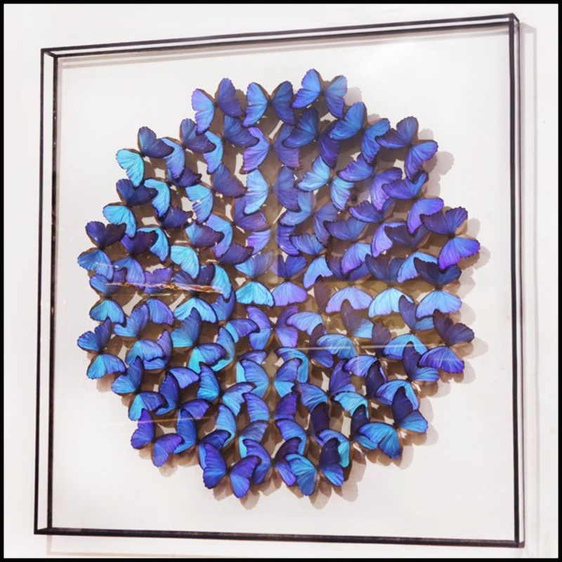 Décoration Murale Morphos, assemblage de papillons sous boîte en verre,