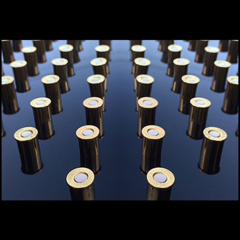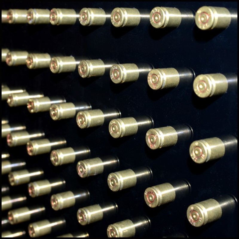 Composé de 862 balles de 9mm. Sur plexiglass noir brillant