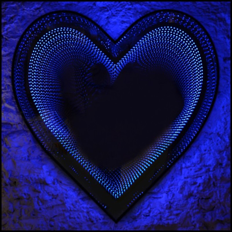 En forme de coeur. Avec option de changement de couleurs par télécommande.