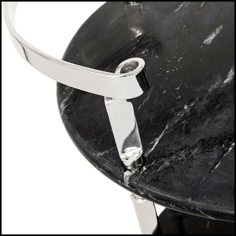 Elle est dotée d’une structure en métal chromé, de deux plateaux en