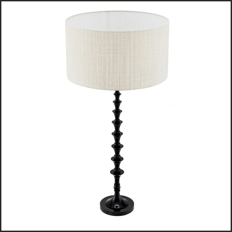 La lampe de table Arabella d’Eichholtz associe une base en granit noir à