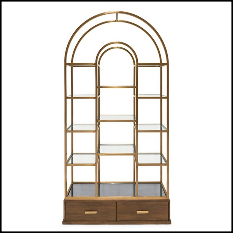 Étagère Lounge avec une structure en métal satiné et une base en bois
