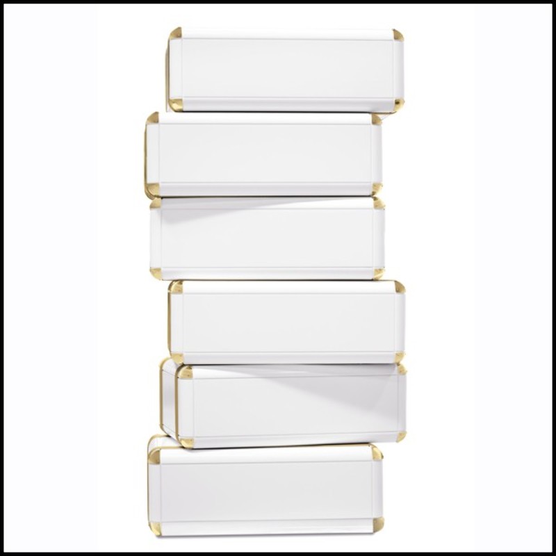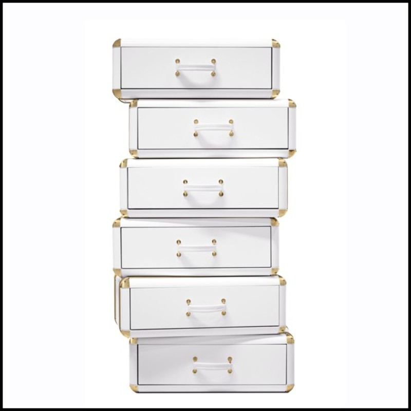 Composée de valises empilées abritant 6 tiroirs en bois massif laqué