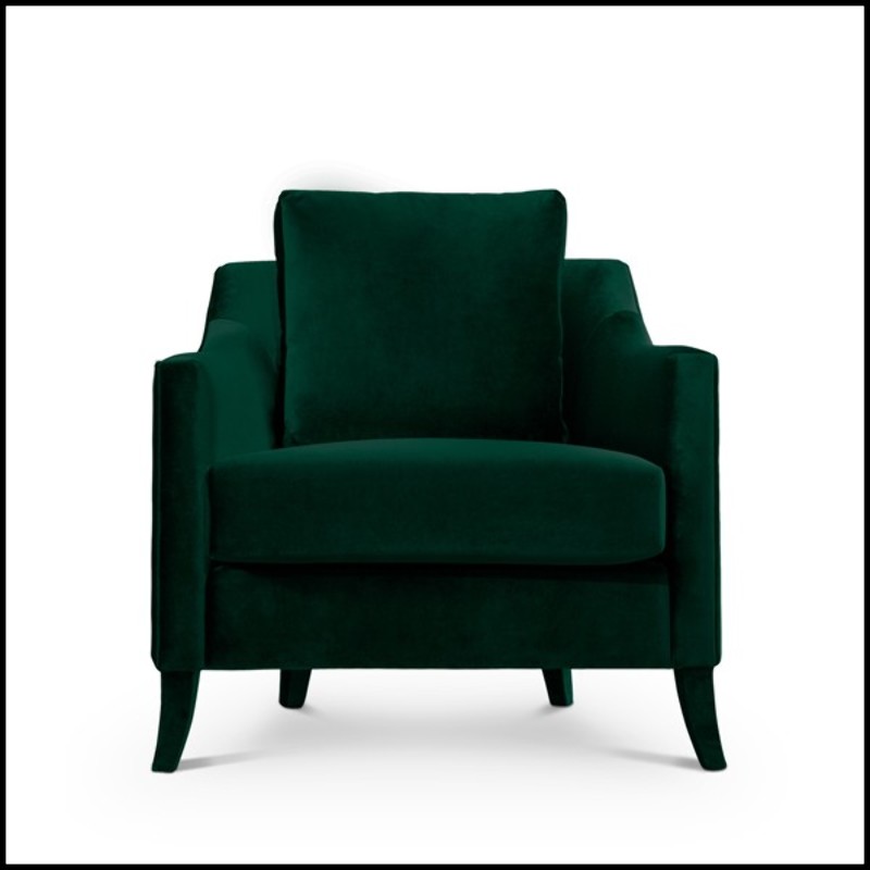 Fauteuil en velours de coton vert Anglais et entièrement rembourré 155-British Green
