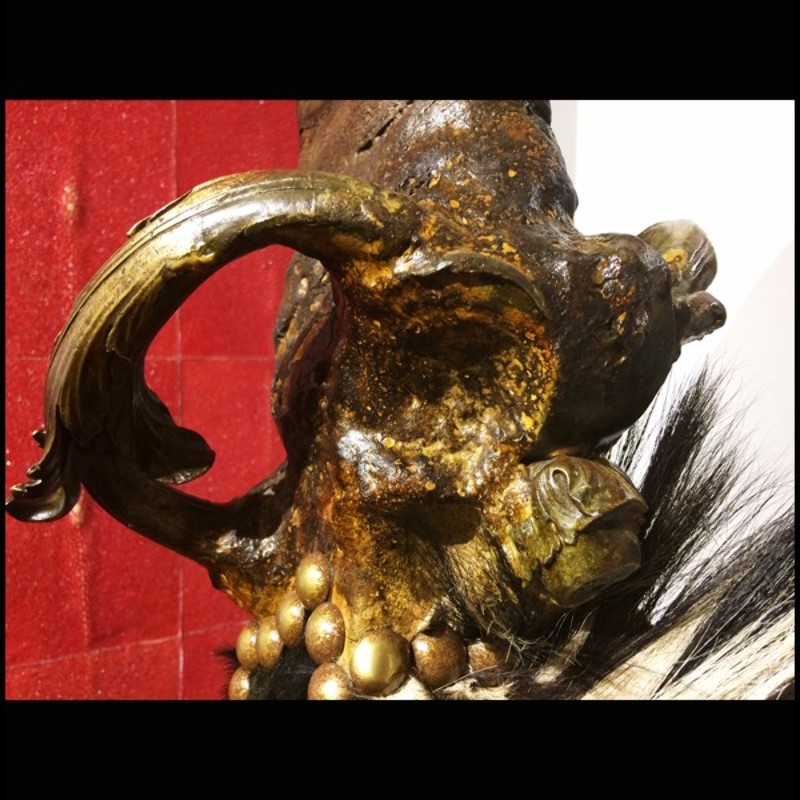 Fauteuil avec peau de zèbre véritable et détails et clous en bronze massif 120-Zebra King