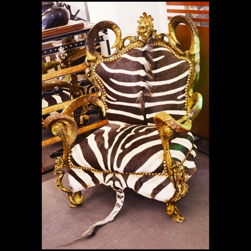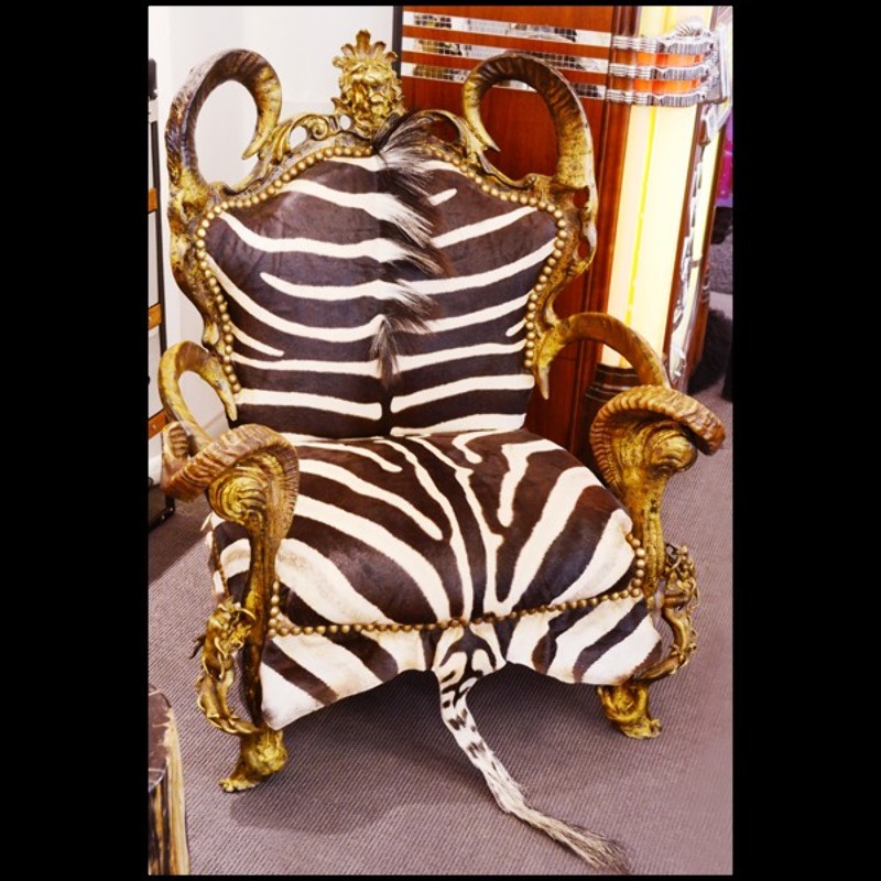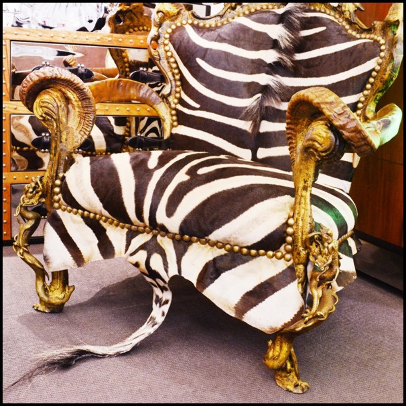 Fauteuil couvert avec véritable peau de zèbre de Burchell et avec cornes véritables 120-Zebra