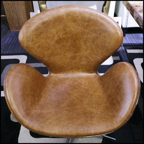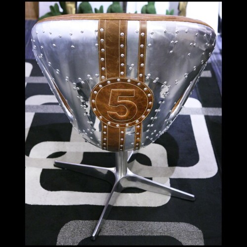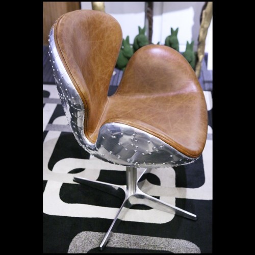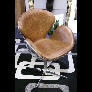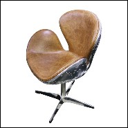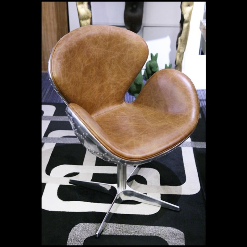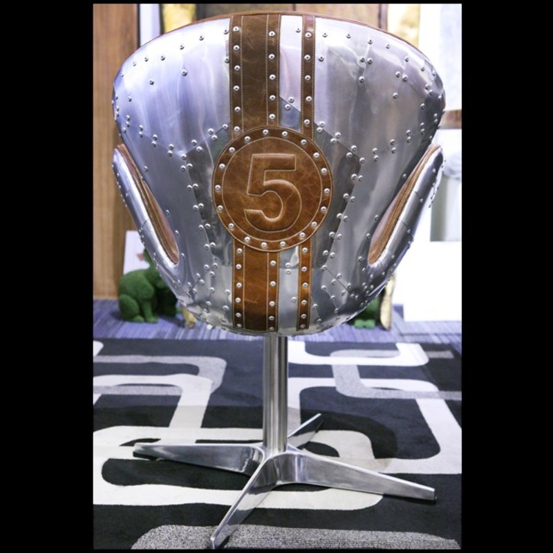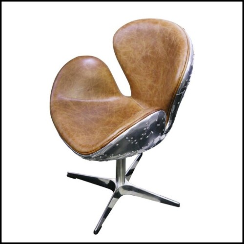 Fauteuil rotatif medium avec aluminium poli riveté et cuir brown véritable PC-Number 5 Brown M