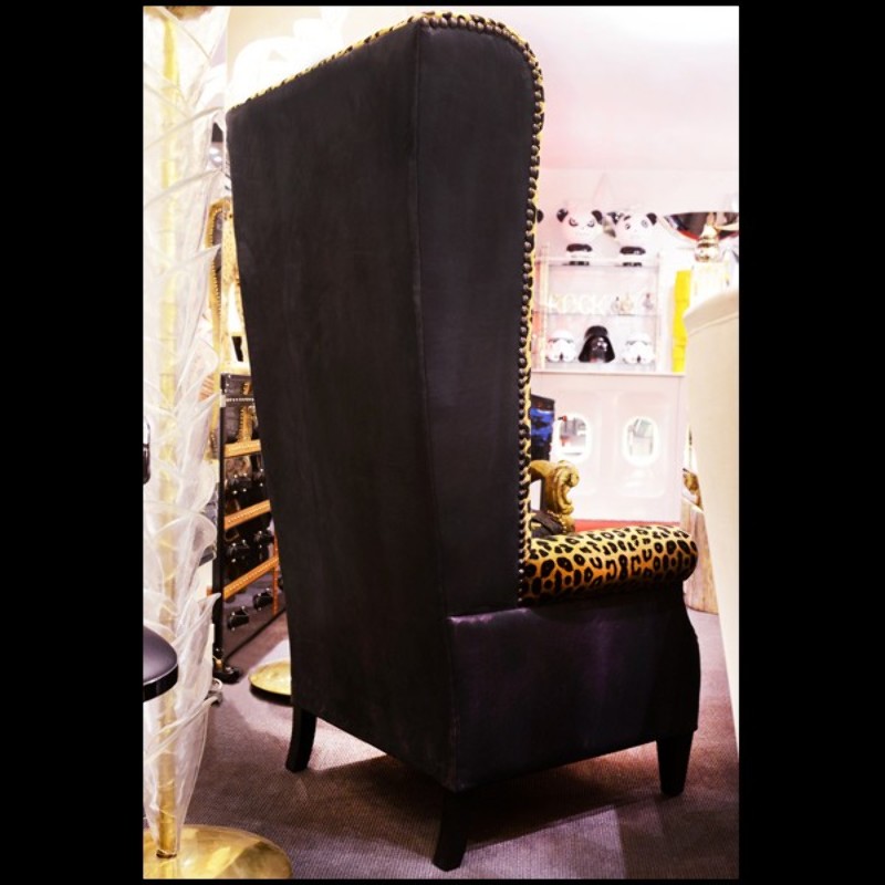 Fauteuil avec tissu velours Leopard et cuir nubuck noir 39-Leopard
