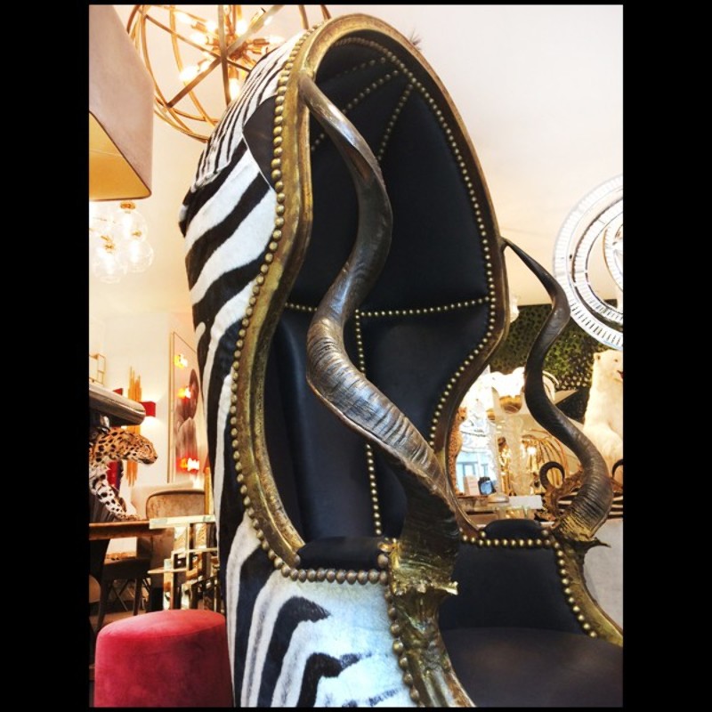 Fauteuil couvert avec véritable peau de zèbre de Burchell avec cornes naturelles véritables PC-Zebra Black