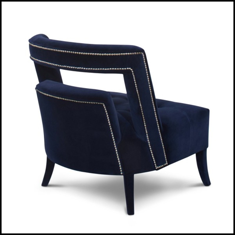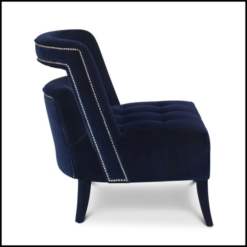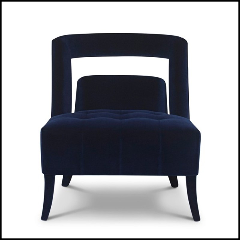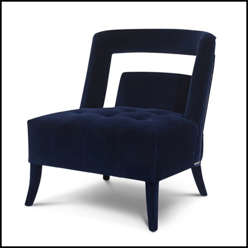 Fauteuil avec structure en bois massif recouvert de tissu velours bleu 169-Mahal