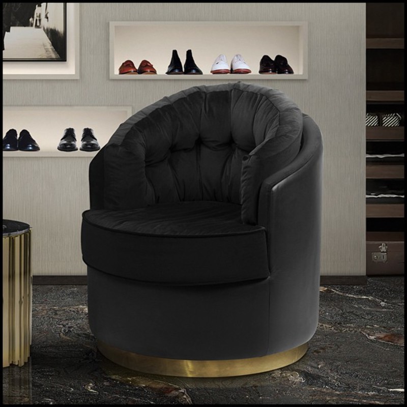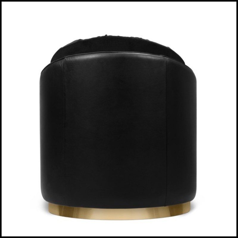 Fauteuil avec structure en bois massif recouvert de velours noir et de cuir véritable noir 164-Tempo