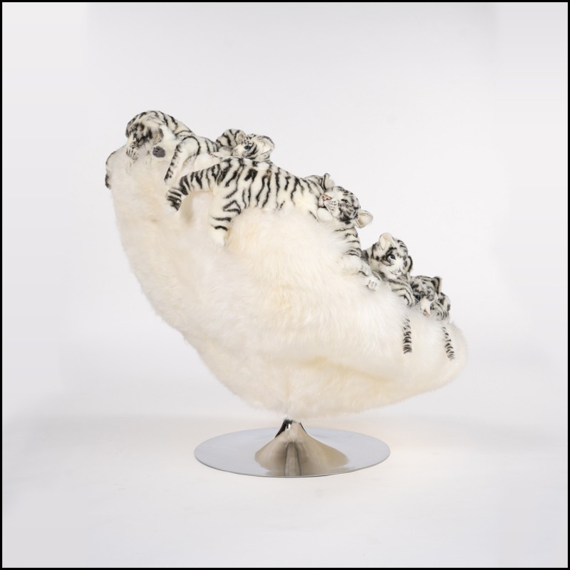 Avec ce fauteuil composé de peluches en forme de tigre, vous aurez l'impression de toucher le véritable pelage d'un tigre, sans danger. Positionnées sur tout le dossier, ces adorables petites peluches ont été cousues à la main.