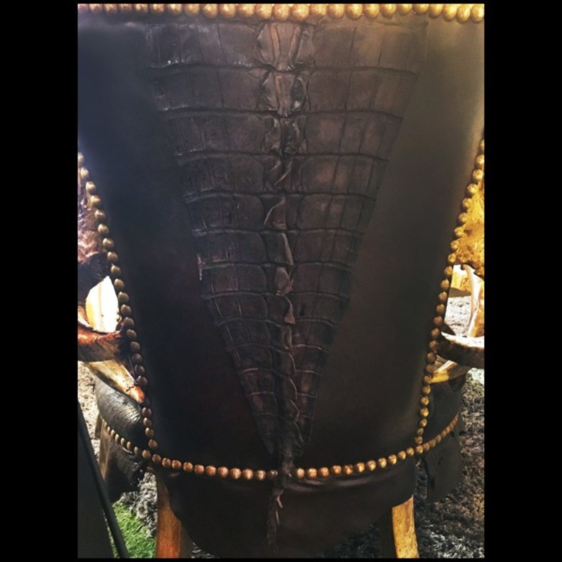 et recouvert de véritable peau d'alligator teinté noir naturel.