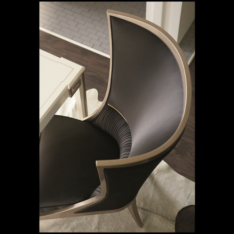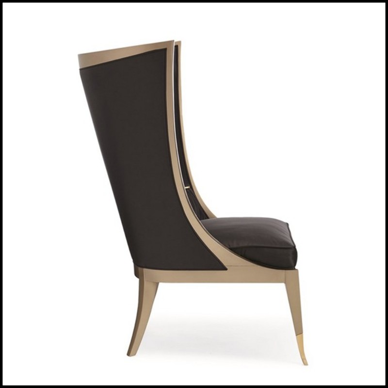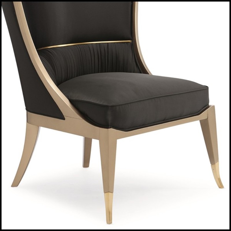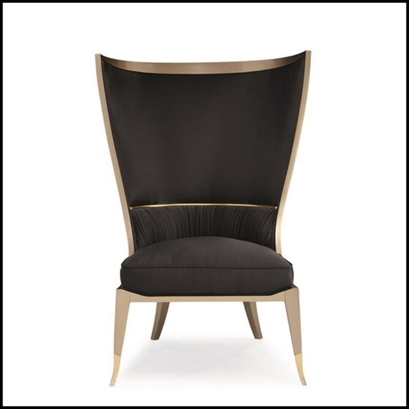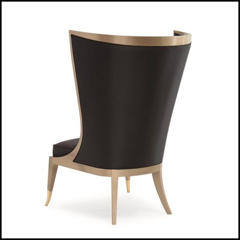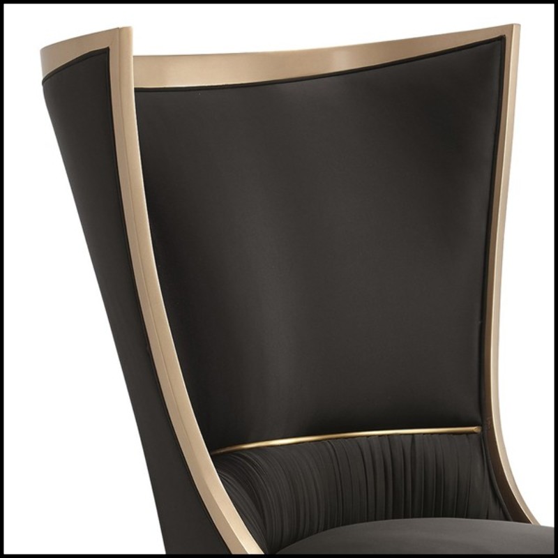 Fauteuil avec structure en métal doré vintage et tissu satiné chocolat foncé 180-c