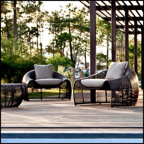 Fauteuil avec structure en acier et abaca naturel de Bornéo 178-Half Moon