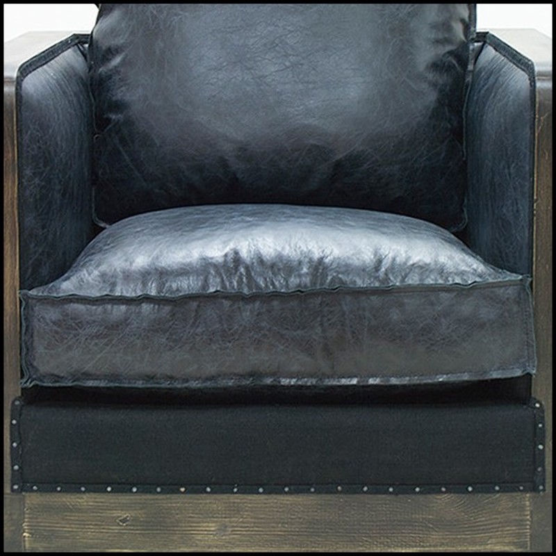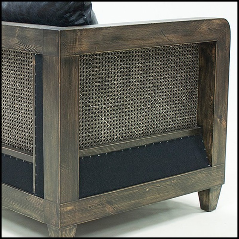 Fauteuil avec structure en bois patiné cannage vintage naturel et cuir vintage noir 176-Black Cannage
