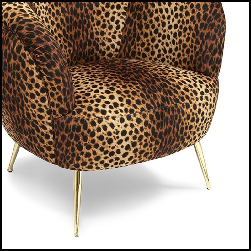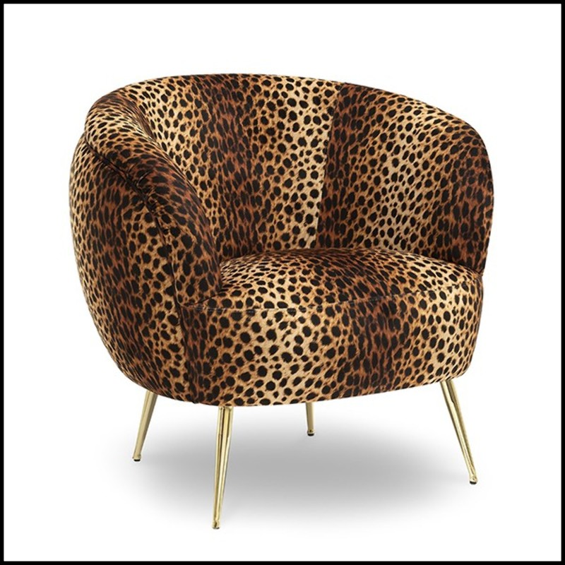 Fauteuil couvert avec tissu en velours et pieds en metal finition gold 162-Panther