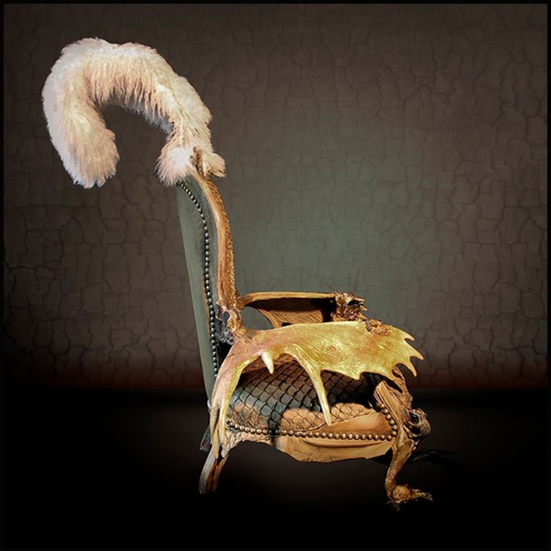 Fauteuil avec peau de piraruku et avec bois de rennes et queue de girafe PC-Piraruku