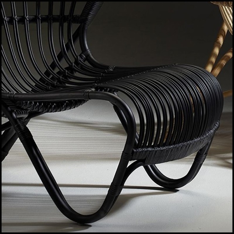 Fauteuil Roxy Black, entièrement confectionné à la main en rotin