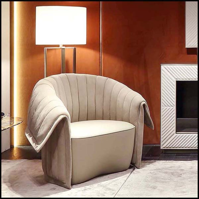 Fauteuil en bois massif rembourré et couvert avec tissu italien en velours coloris olive ou bleu ou beige 150-Great Rest
