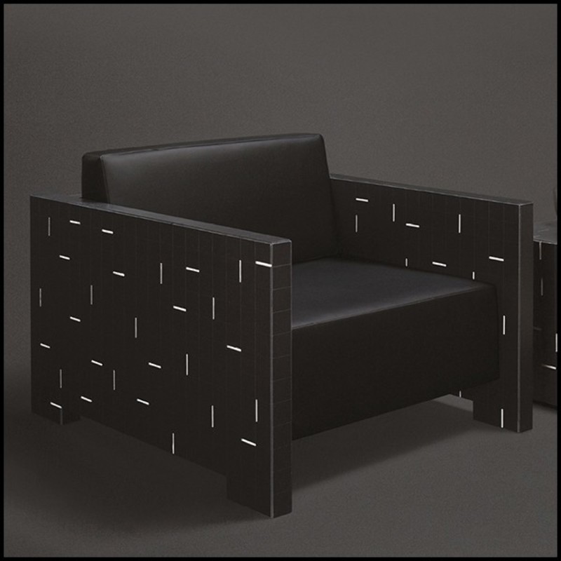 Fauteuil couvert avec carrés de cuir véritable noir avec petites tiges blanches en cuir 189-Rods Leather