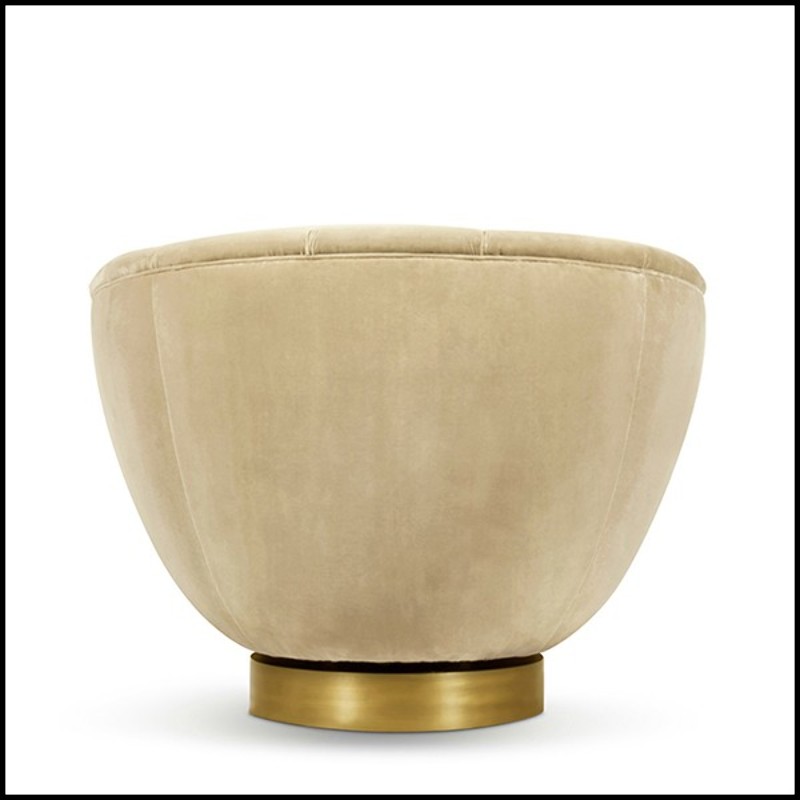 Découvrez le Fauteuil Essex - Brabbu, un véritable chef-d'œuvre de design qui allie le confort et l'élégance. Ce fauteuil design en velours beige de coton est posé sur une base pivotante en laiton mat antique, offrant une touche de sophistication à votre espace. Vous pouvez trouver d'autres modèles de Fauteuils de luxe pour compléter votre décor intérieur avec un mobilier haut de gamme. Le Fauteuil Essex - Brabbu est un exemple parfait de fauteuil moderne en bois massif qui combine la beauté du coton velours avec la robustesse du bois massif et la finesse du laiton antique, créant ainsi un fauteuil luxe qui répond à vos attentes de confort et d'élégance.